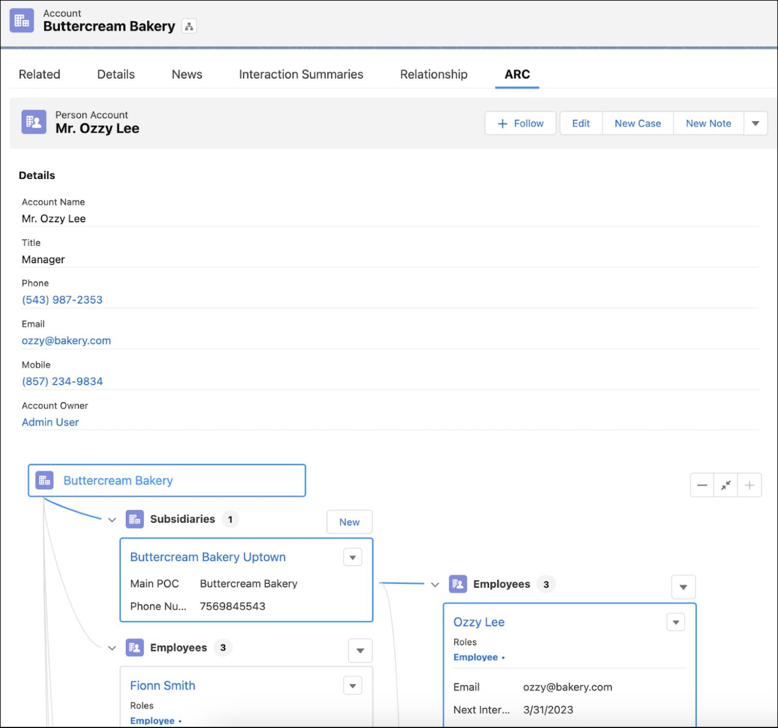 [Alt text: View Buttercream Bakery Account ARC graph: Buttercream Bakery details, employees.]