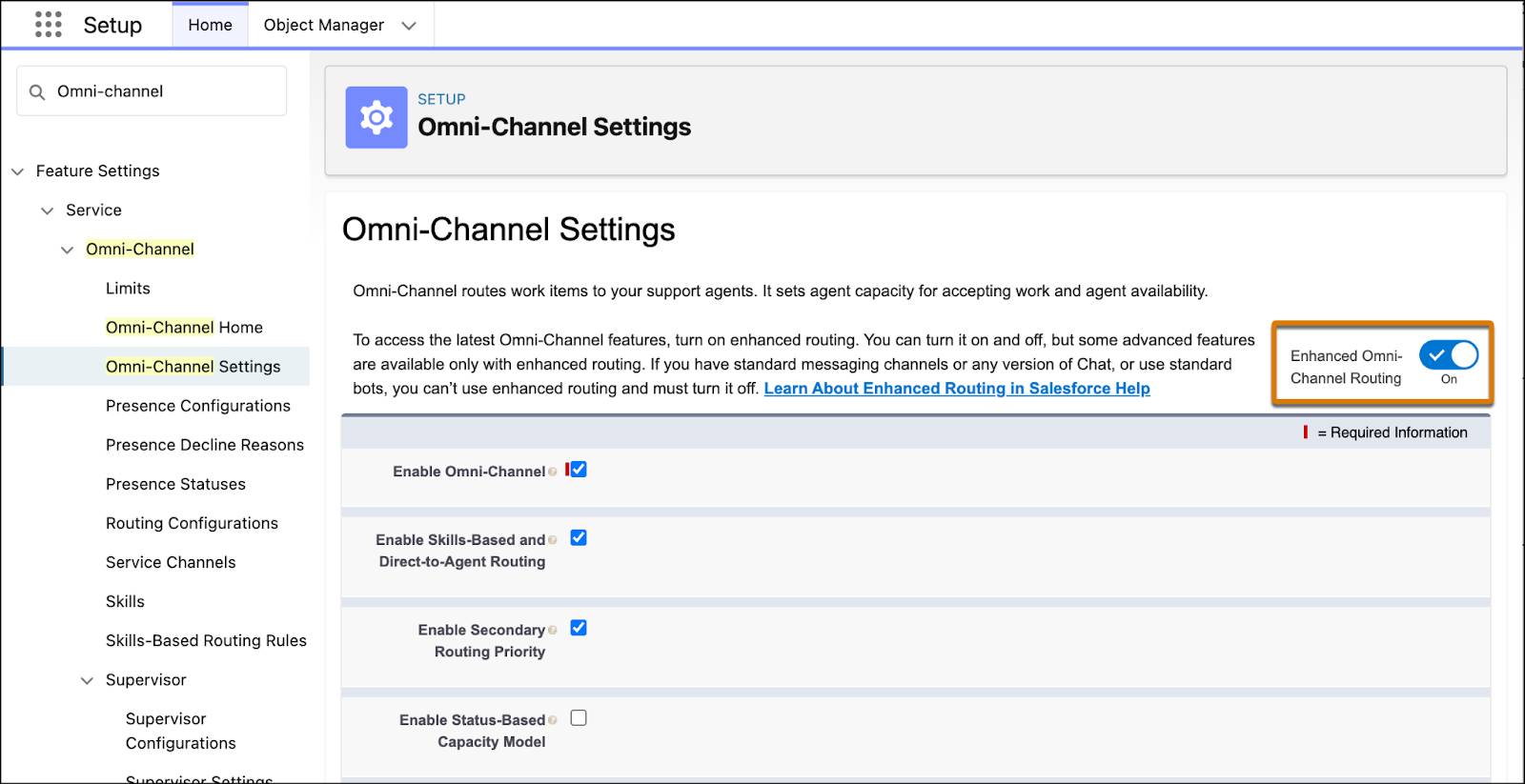 • Verify that your org isn’t already running Enhanced Omni-Channel. Salesforce orgs created after Summer ’23 have Enhanced Omni-Channel on by default.