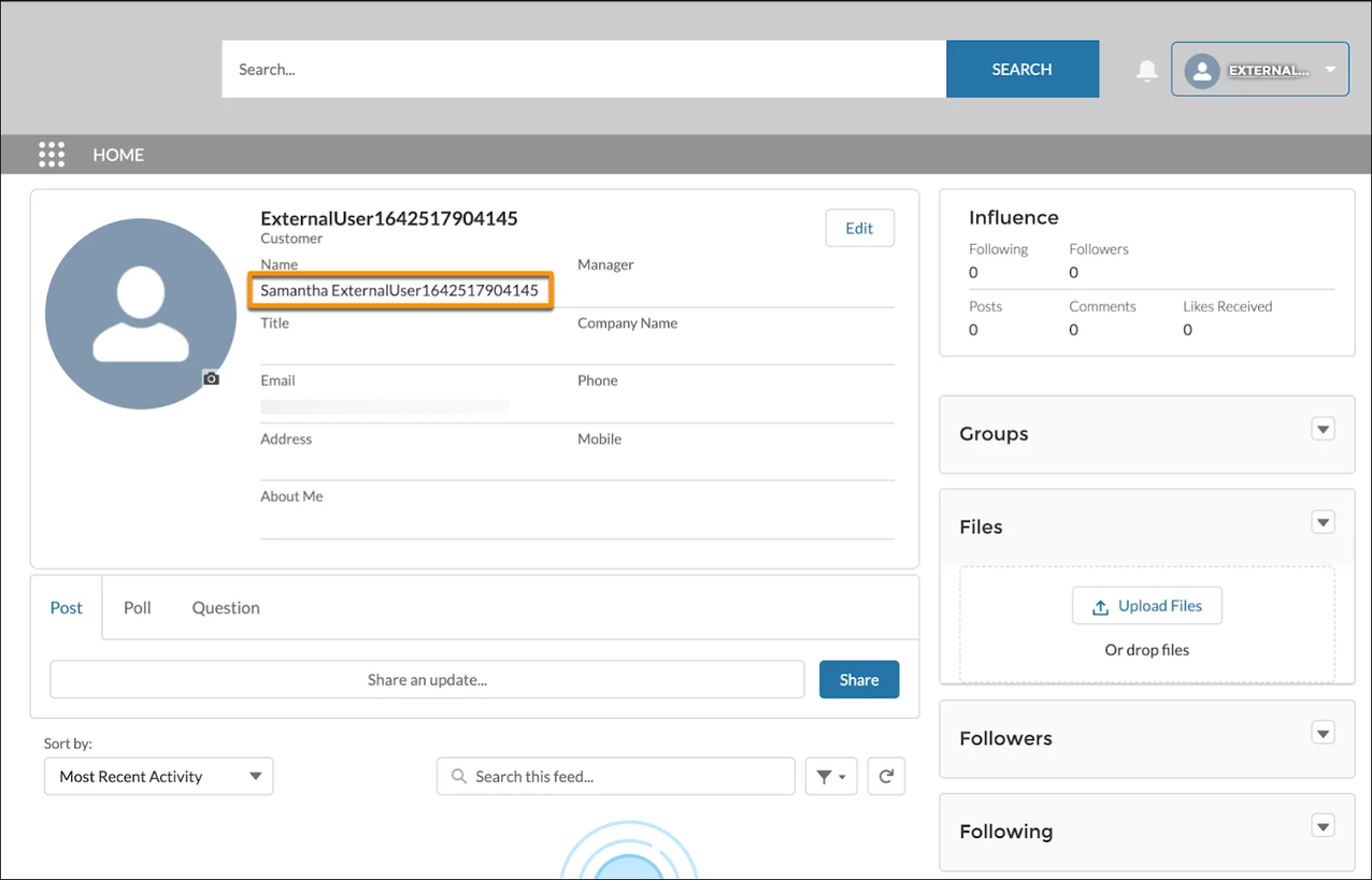 - External Identity ライセンスを持つユーザーのプロファイルをコピーして作成した [NTO Customer (NTO 顧客)] プロファイルを割り当てます。
