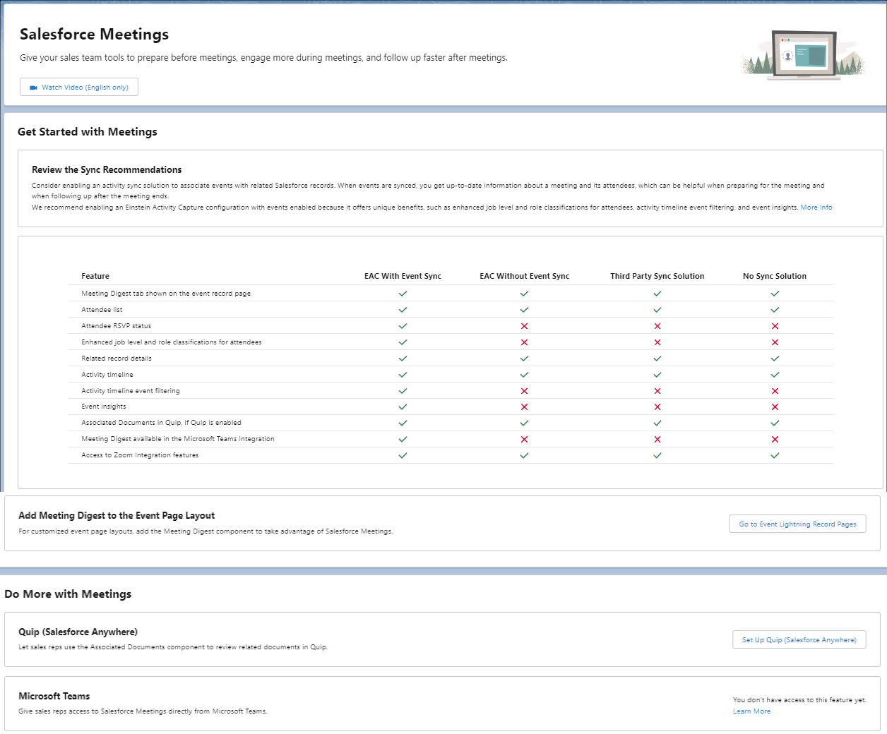 Nesse módulo, pressupomos que você seja um administrador do Salesforce com as devidas permissões para configurar o Salesforce Meetings. Também pressupomos que sua solução de sincronização de atividades esteja configurada. Se você não for um administrador, tudo bem. Continue lendo para saber como seu administrador do Salesforce pode habilitar e configurar o Salesforce Meetings para você.